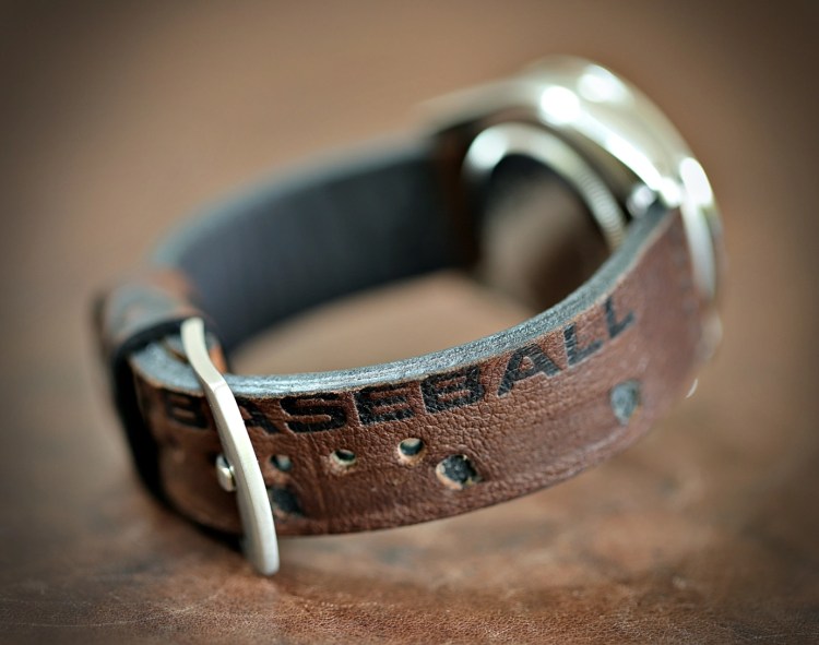Dieses Band wurde aus einem alten Wilson Baseballhandschuh gefertigt.