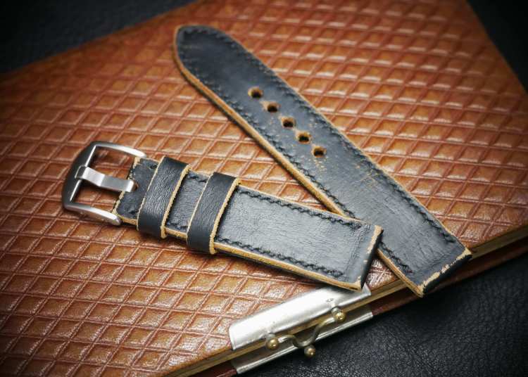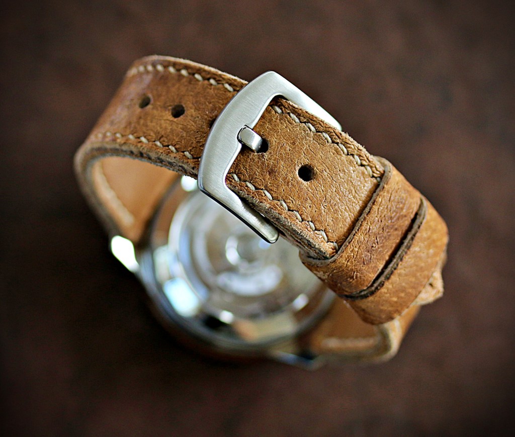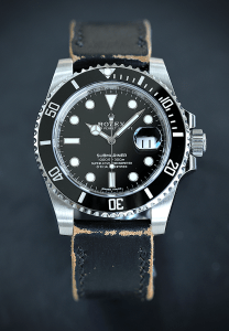 Die Submariner macht auch am Vintageleder eine gute Figur! Für dieses Uhrband wurde altes Leder von einem Bundeswehrgürtel verwendet.