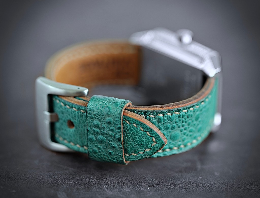 Schlicht und elegant wirkt dieses grüne Störlederband an der IWC.