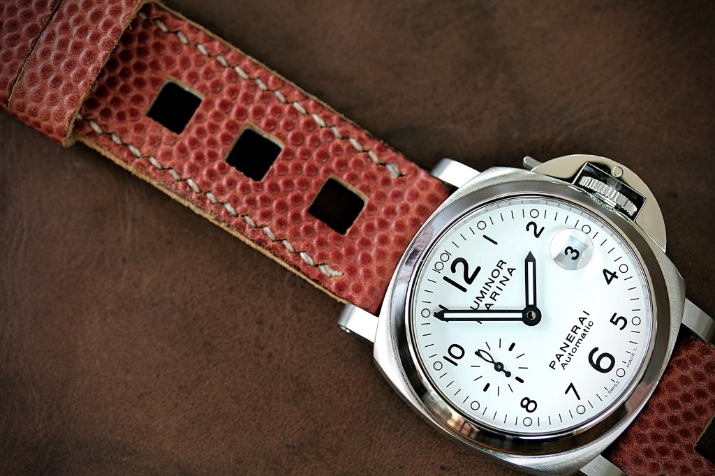 Ein ausgedienter, alter Football lieferte das Leder für dieses Panerai-Band.