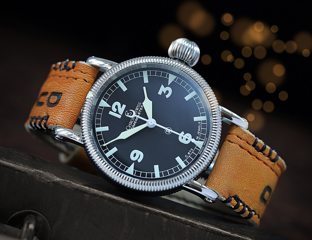 Klassisches Fliegeruhrdesign trifft auf sportliches Leder.